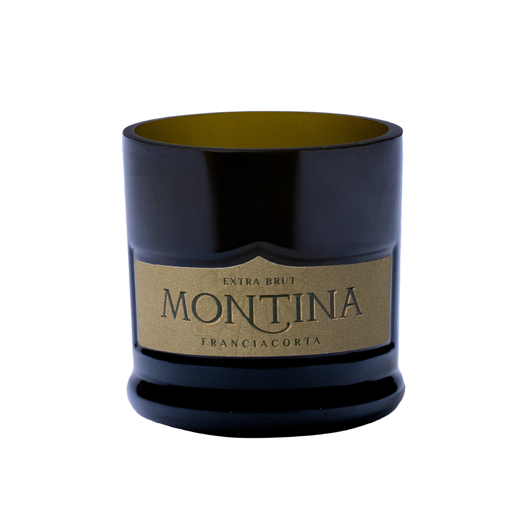 - Un vasetto realizzato da una bottiglia vuota di Franciacorta, trasformabile in portacandele, vaso per fiori o contenitore di ricordi preziosi, per un regalo sostenibile e creativo.